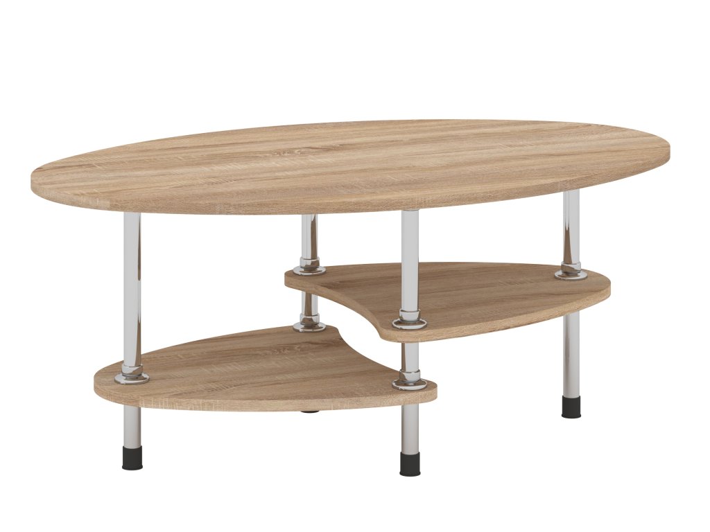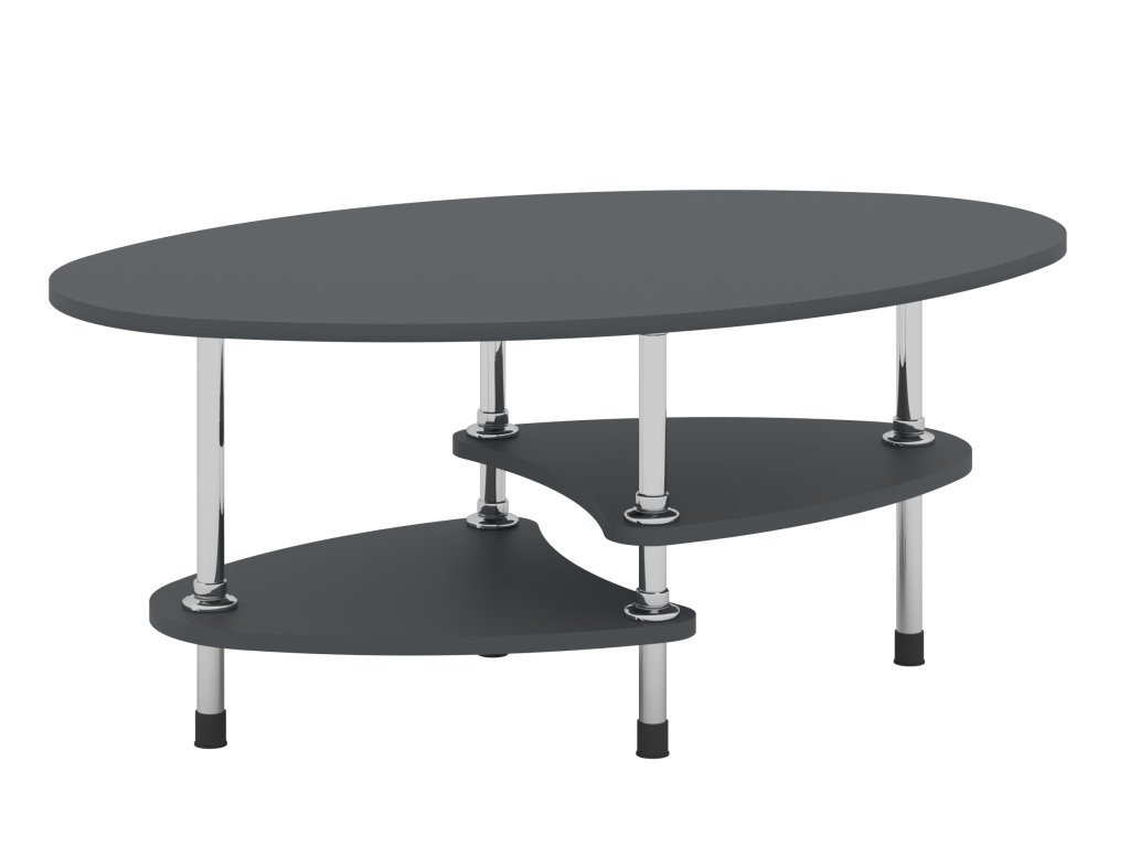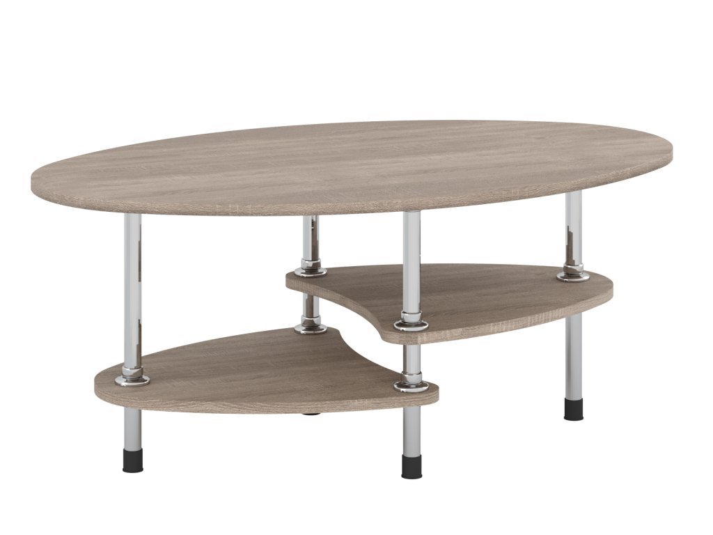 Konferenční stolek VEGA je elegantní a praktický nábytek, který dokonale zapadne do každého interiéru. Jeho oválný tvar s moderními designovými prvky nabízí stylovou estetiku, která zaujme na první pohled. Stolek je vybaven policemi, které poskytují dostatek prostoru pro uložení časopisů, dálkových ovladačů nebo jiných drobností, které chcete mít vždy po ruce. Rozměry stolu (hloubka 60 cm, délka 90 cm, výška 48 cm) jsou ideální pro menší i střední obývací pokoje, kde se stane praktickým a zároveň designovým prvkem.