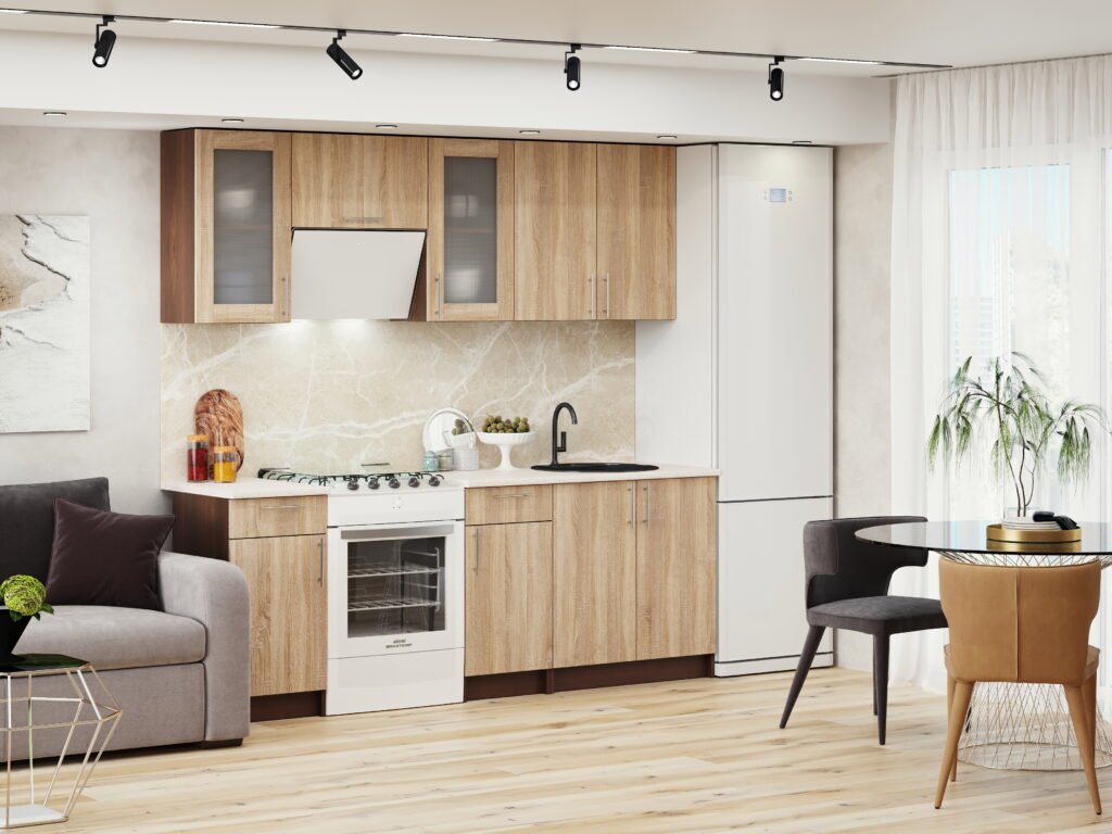 Kuchyňská linka GLORIA 2,2m, dub sonoma + ořech tmavý