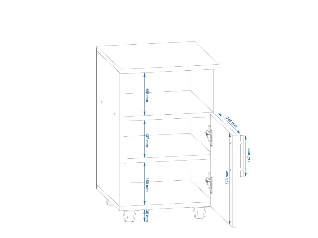 Noční stolek s dvířky a poličkou MILANA – Elegance a funkčnost pro vaši ložnici