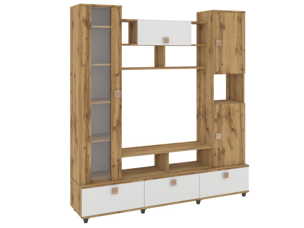Obývací stěna VERONA je elegantní a funkční nábytková sestava, která vdechne vašemu obývacímu pokoji nový život. Díky široké škále barevných variant, včetně bílé, dubu sonoma, ořechu, wenge, antracitu a dalších, snadno sladíte stěnu s vaším interiérem. Moderní design s čistými liniemi a kvalitními materiály zaručuje dlouhou životnost a odolnost.