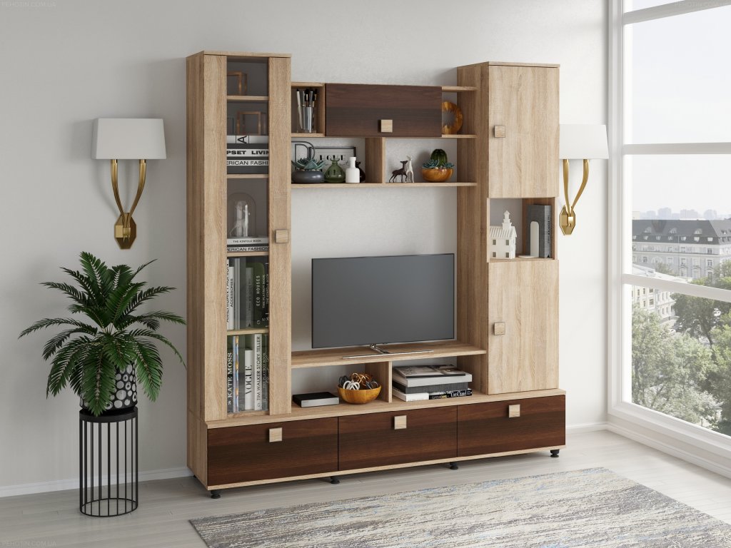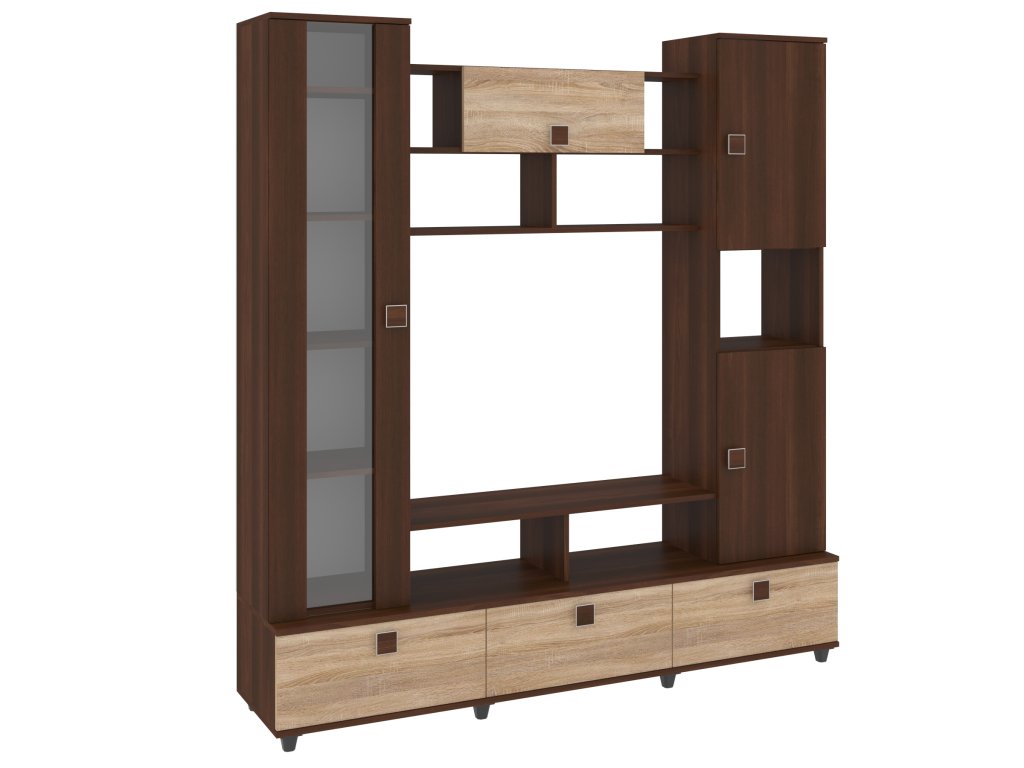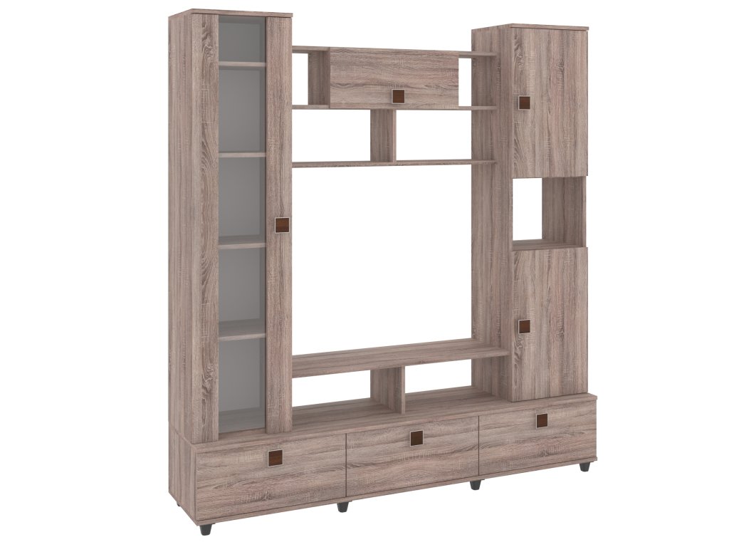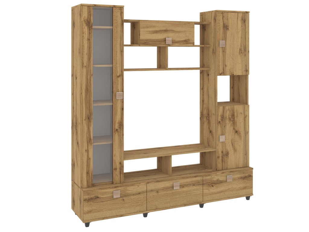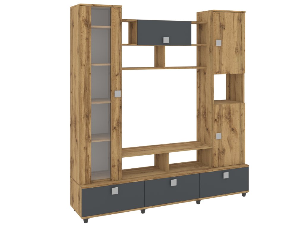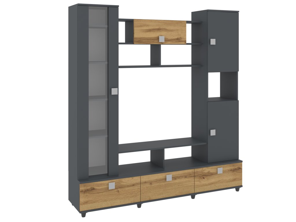 Obývací stěna VERONA je elegantní a funkční nábytková sestava, která vdechne vašemu obývacímu pokoji nový život. Díky široké škále barevných variant, včetně bílé, dubu sonoma, ořechu, wenge, antracitu a dalších, snadno sladíte stěnu s vaším interiérem. Moderní design s čistými liniemi a kvalitními materiály zaručuje dlouhou životnost a odolnost.
