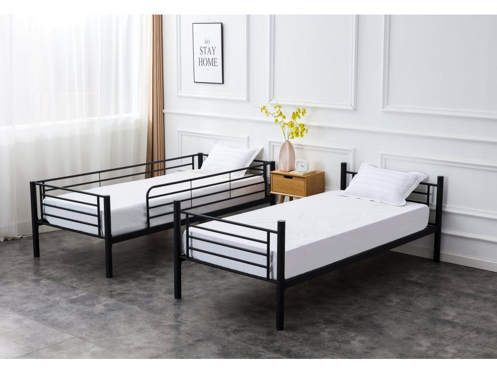 Ideální řešení pro děti, teenagery i hosty! Patrová postel BANKY 90x200 kombinuje moderní design s vysokou funkčností. Elegantní černý kovový rám je pevný, odolný a díky práškově lakovanému povrchu snadno udržovatelný.