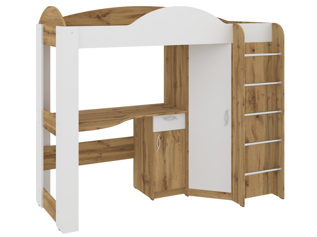 Hledáte ideální postel pro vaše dítě, která nabízí nejen kvalitní spánek, ale i praktický úložný prostor a pracovní zónu? Patrová postel ORBITA je perfektním řešením pro menší pokoje, kde každý centimetr prostoru má svůj význam. Díky kombinaci postele, šatní skříně a psacího stolu získáte vše, co vaše dítě potřebuje, v jednom elegantním a funkčním designu.