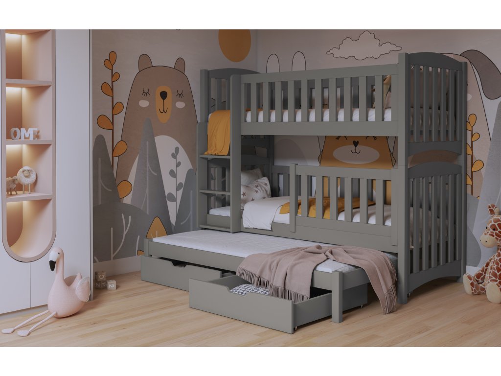 Patrová postel s přistýlkou CUBIX, 90 x 200 cm, barva grafit + ROŠTY a ZÁSUVKY v ceně