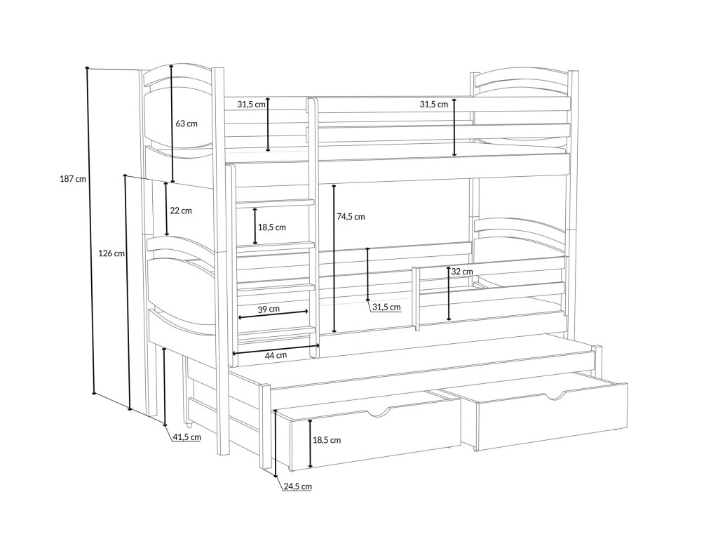 Postel spojuje pohodlí, funkčnost a elegantní minimalistický design, který zapadne do každého interiéru. Je ideálním řešením pro děti, rodiče i sourozence. Bez kompromisů na prostoru či pohodlí.