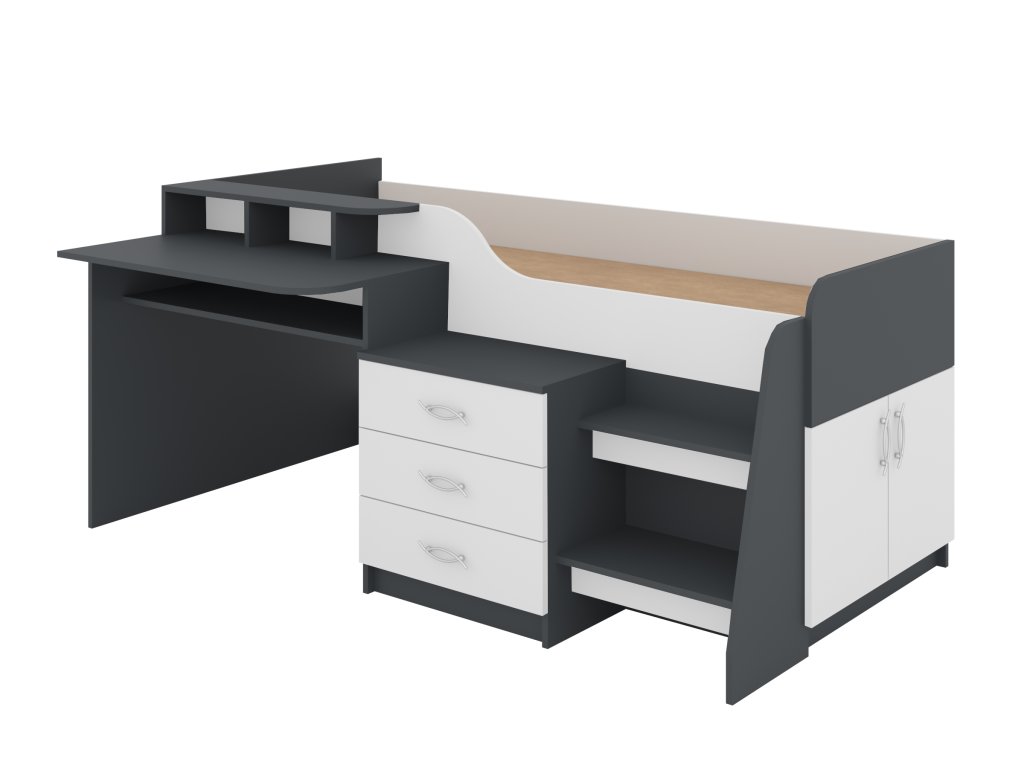 Patrová postel SPEYS, 70 x 190 cm, s psacím stolem a komodou | ANTRACIT + BÍLÁ