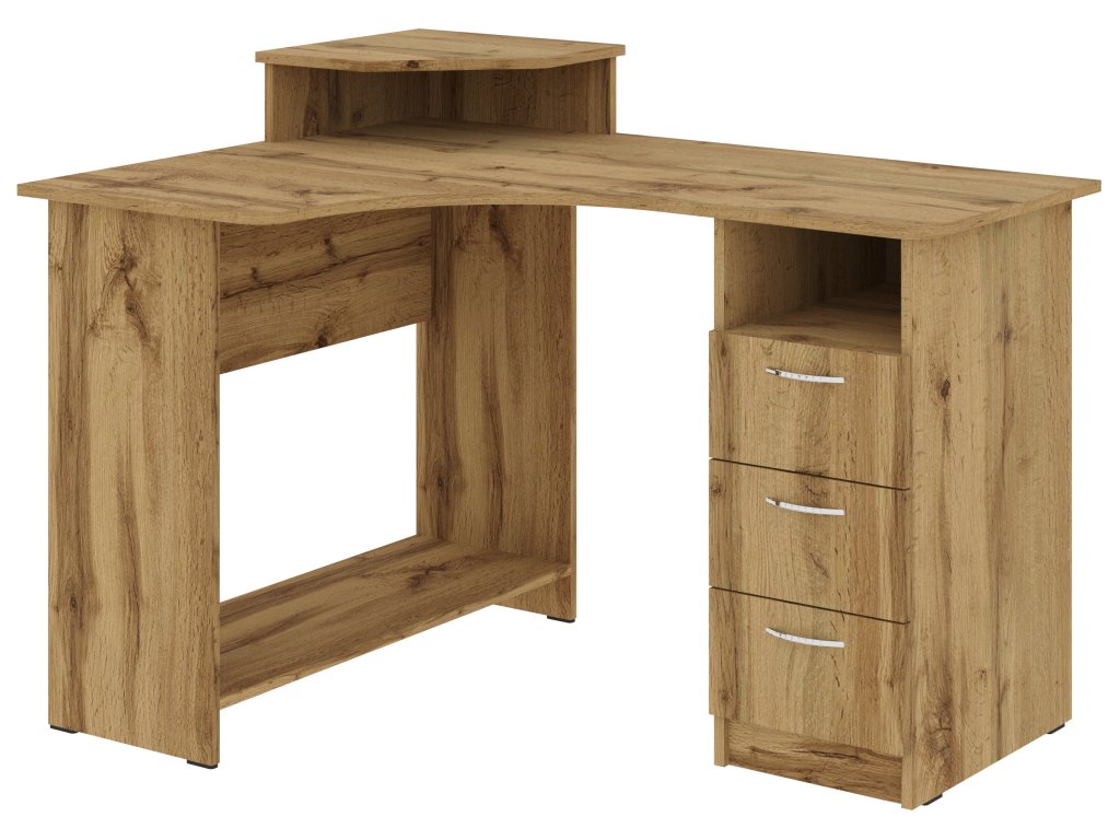 Rohový psací stůl KOMPAKT se zásuvkami je ideální volbou pro každou domácnost či kancelář, kde je kladen důraz na efektivitu a úsporu prostoru. Tento praktický stůl nabízí dostatek místa pro počítač, pracovní materiály i osobní věci. Je vybaven zásuvkami, které pomohou udržet vše potřebné po ruce a zároveň organizované. Elegantní design stolu, kombinující moderní a funkční prvky, se hodí do různých interiérů. Stůl je vyroben z kvalitních materiálů, které zajišťují jeho dlouhou životnost a odolnost.