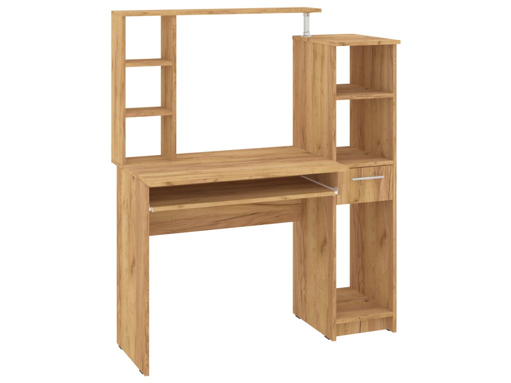 Psací stůl s nástavcem a policemi Prometej je ideálním řešením pro každou domácnost nebo kancelář, kde je potřeba dostatek úložného prostoru a pohodlné pracovní místo. Tento moderní stůl nabízí kombinaci elegance a funkčnosti, díky nástavci pro snadné uložení dokumentů, knih a dalších pracovních potřeb. Policové prostory poskytují dodatečný úložný prostor pro vše, co potřebujete mít po ruce. Stůl je vyroben z kvalitního materiálu, který zajišťuje jeho dlouhou životnost a stabilitu.