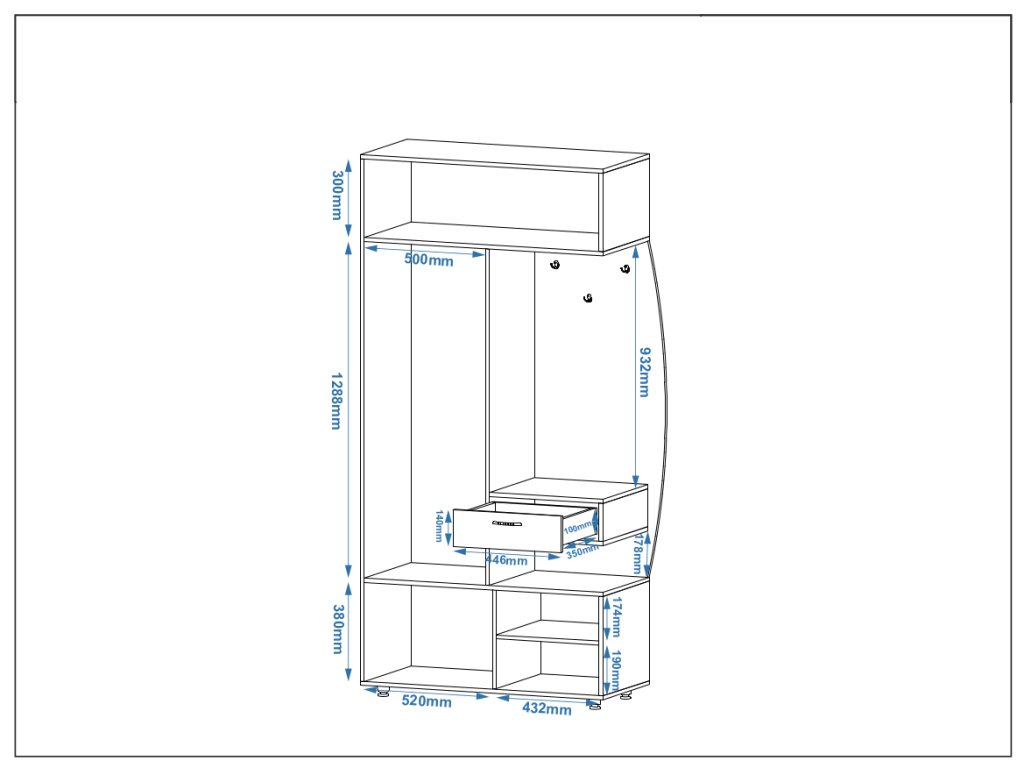 - Vysoká kapacita: Uložíte oblečení, obuv i další drobnosti – vše na jednom místě a s přehledem.