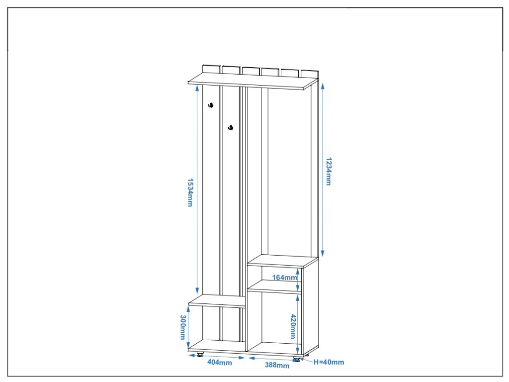 - Všestranné využití – věšák pro kabáty, botník pro obuv, a police pro uložení drobností nebo dekorací.