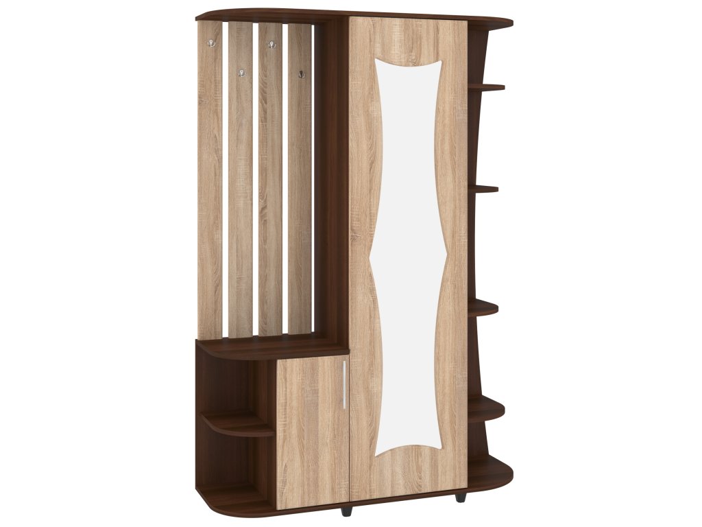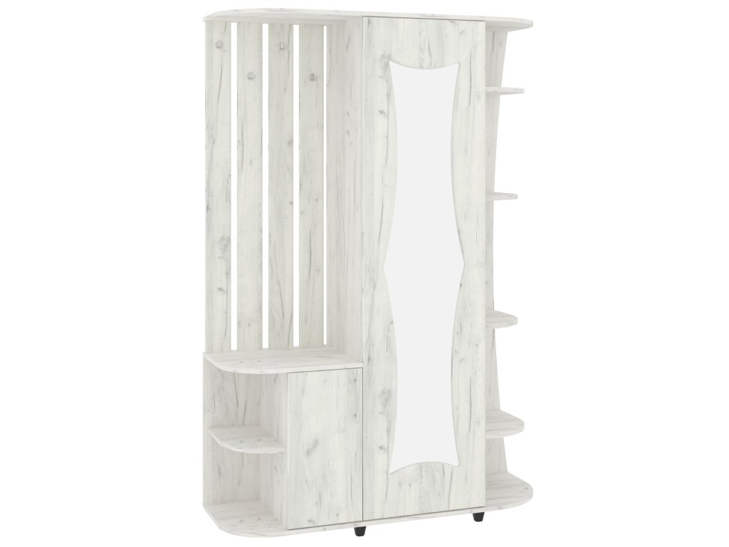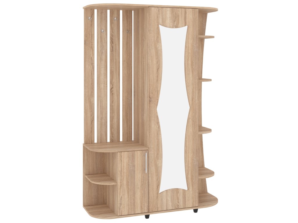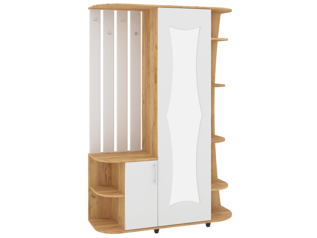 - Funkčnost na prvním místě: Spojení zrcadla, věšáků, skříně, výsuvu, zásuvek a botníku v jednom nábytku pro kompletní řešení předsíně.