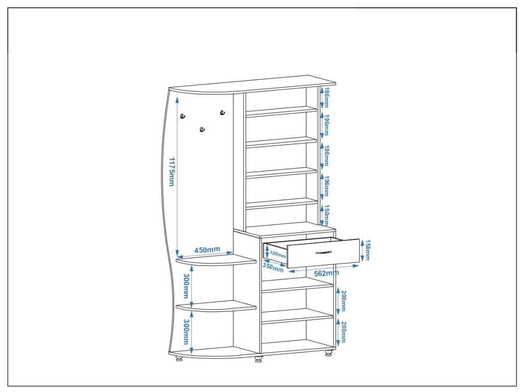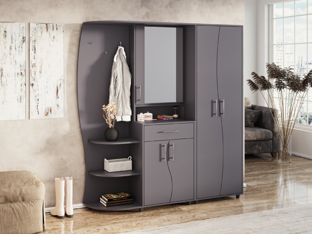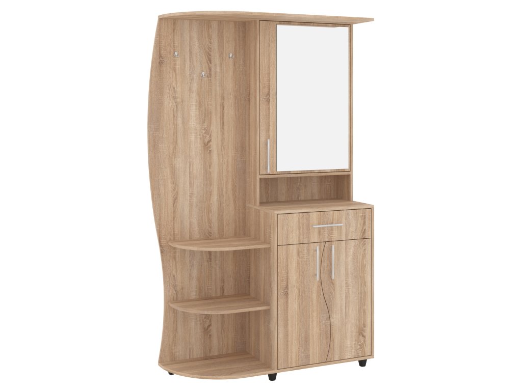- Praktické uspořádání: Kombinace věšáku, zrcadla, botníku a zásuvky umožňuje efektivní organizaci vaší předsíně.
