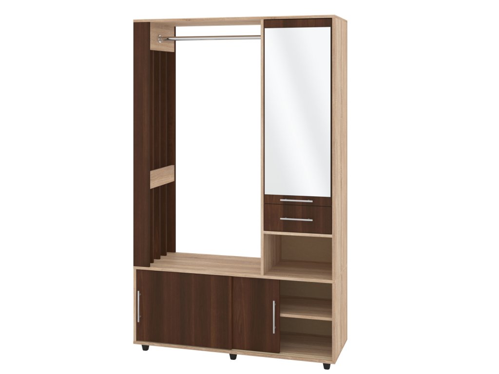 Vylepšete svou předsíň s předsíňovou stěnou HERMES, která spojuje moderní design s praktickými funkcemi. Tento elegantní nábytek nabízí širokou škálu úložných prostorů, které vám pomohou udržet pořádek a zároveň vytvoří stylový dojem ve vašem interiéru. Předsíňová stěna obsahuje šatní tyč, zrcadlo, botník s posuvnými dvířky, praktickou zásuvku a navíc i skrytý policový regál za zrcadlovými dvířky, který nabídne ještě více úložného prostoru.
