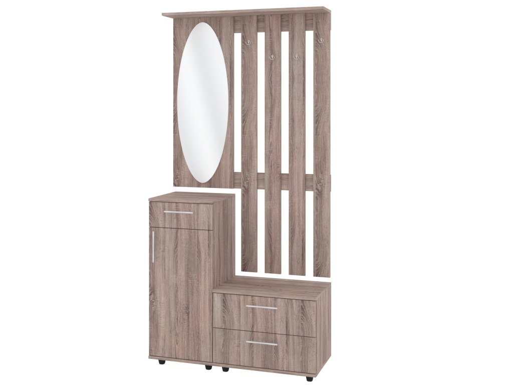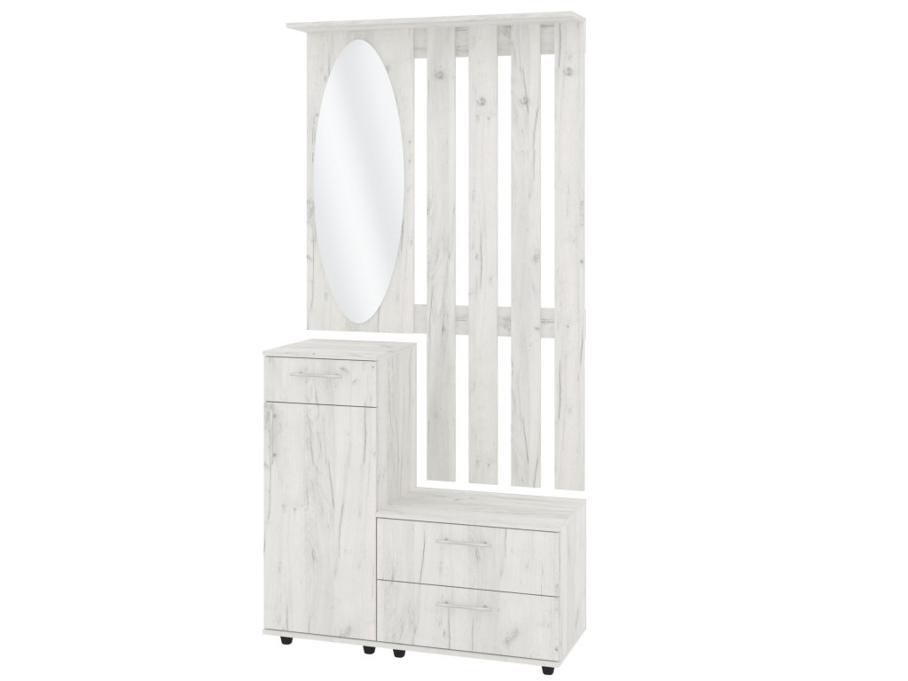 Stylová předsíňová stěna VERNISAZ se zrcadlem, věšákem, zásuvkami a policovým botníkem - Elegantní řešení pro každou předsíň