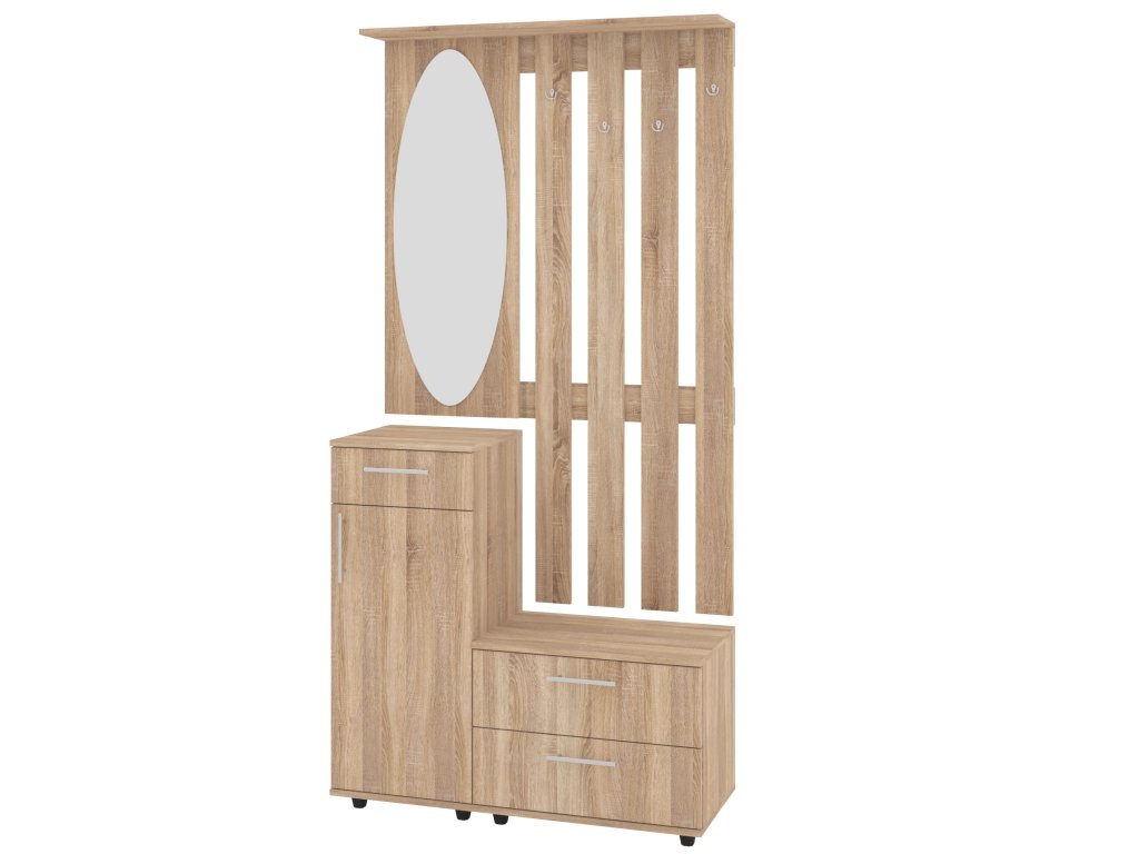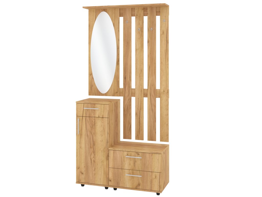 Předsíňová stěna VERNISAZ je ideální volbou pro ty, kteří hledají praktické, ale zároveň elegantní řešení pro svou předsíň. Tento moderní nábytek s kvalitním zrcadlem, vestavěným věšákem, zásuvkami a policovým botníkem s dvířky poskytuje dostatek úložného prostoru pro všechny vaše potřeby. Díky kompaktním rozměrům (hloubka 38 cm, šířka 100 cm, výška 208 cm) je vhodná i do menších prostorů, kde se hodí pro uspořádání bot, kabátů a dalších věcí na jednom místě.