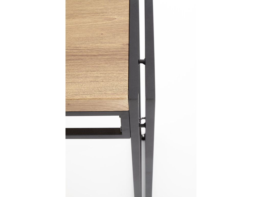 Konzolový stolek BALI KN-1 v barevném provedení dub zlatý a černá je stylovým a funkčním doplňkem do moderních i industriálních interiérů. Je vyroben z kvalitní laminované MDF desky a pevné kovové základny s černým práškovým nástřikem, což zajišťuje vysokou odolnost a dlouhou životnost.