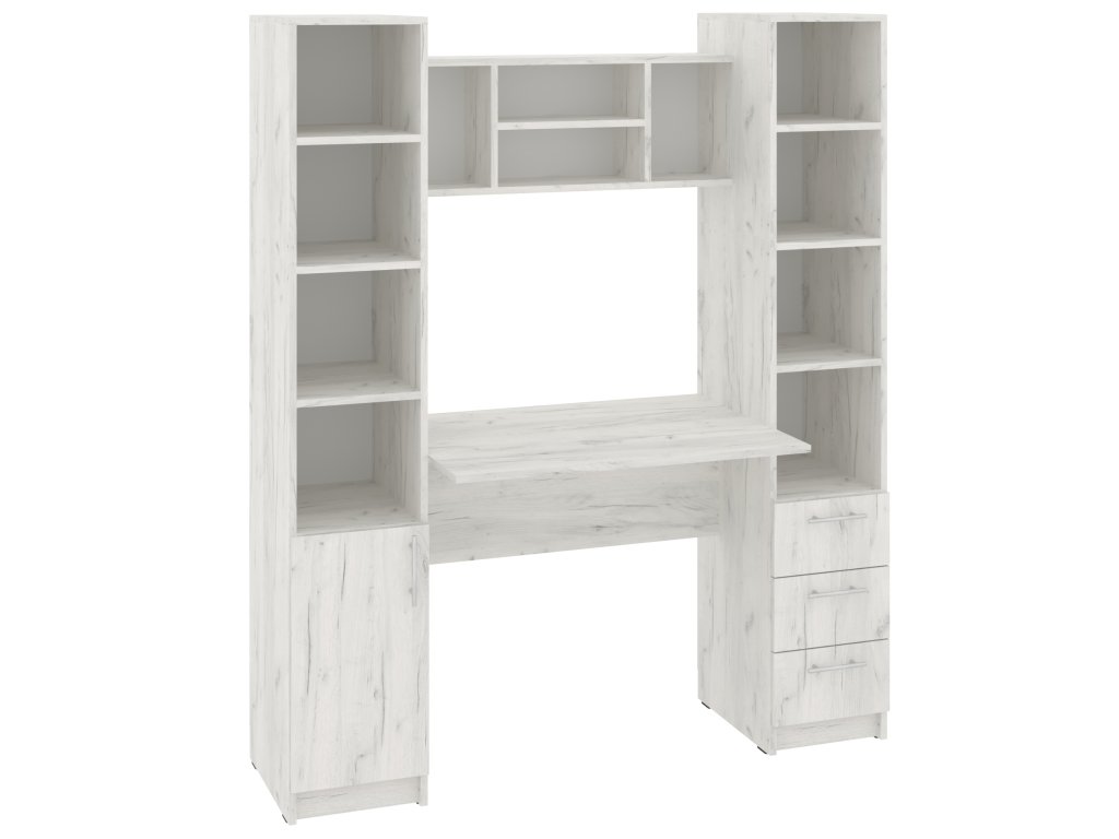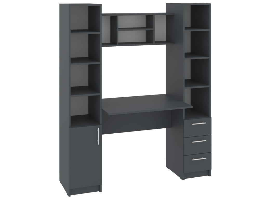 Psací stůl Grand s policovými regály po stranách je perfektní volbou pro každého, kdo hledá stylové a funkční pracovní místo. Tento moderní stůl nabízí dostatek prostoru pro vaši pracovní plochu a zároveň poskytuje praktické úložné možnosti díky vestavěným policovým regálům na obou stranách. Regály jsou ideální pro uskladnění knih, dokumentů, kancelářských potřeb a dalších drobností, které budete mít vždy po ruce.