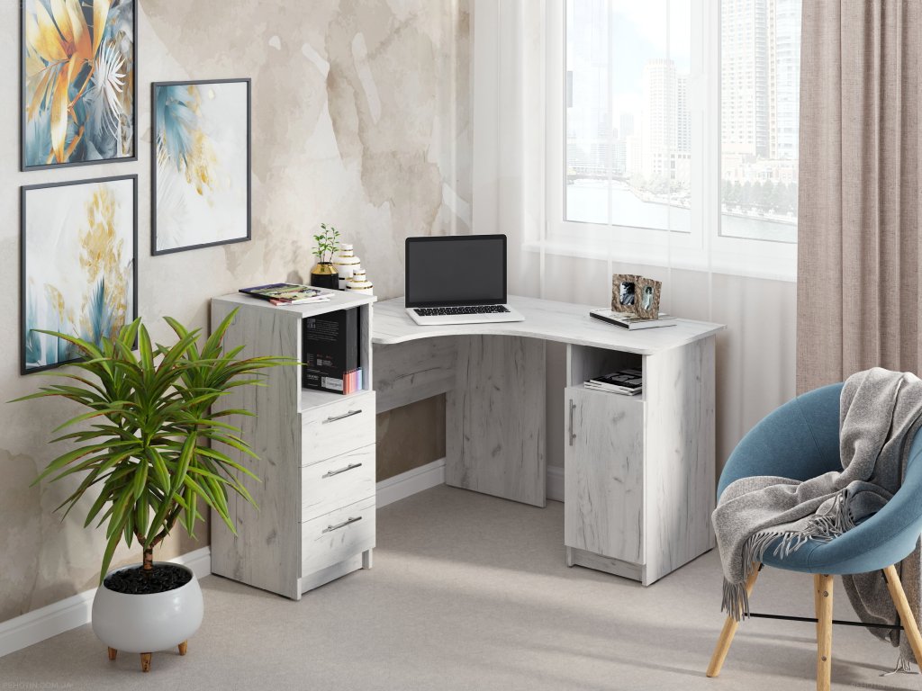 Rohový psací stůl Indigo se zásuvkami – Perfektní volba pro Vaši pracovnu
