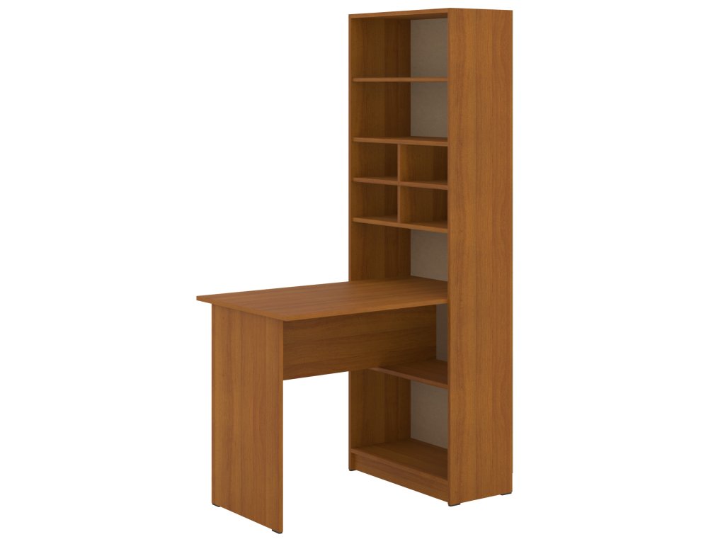 - Praktické úložné prostory: Regál s policemi poskytuje dostatek místa pro uspořádání dokumentů, knih a dalších pracovních potřeb.