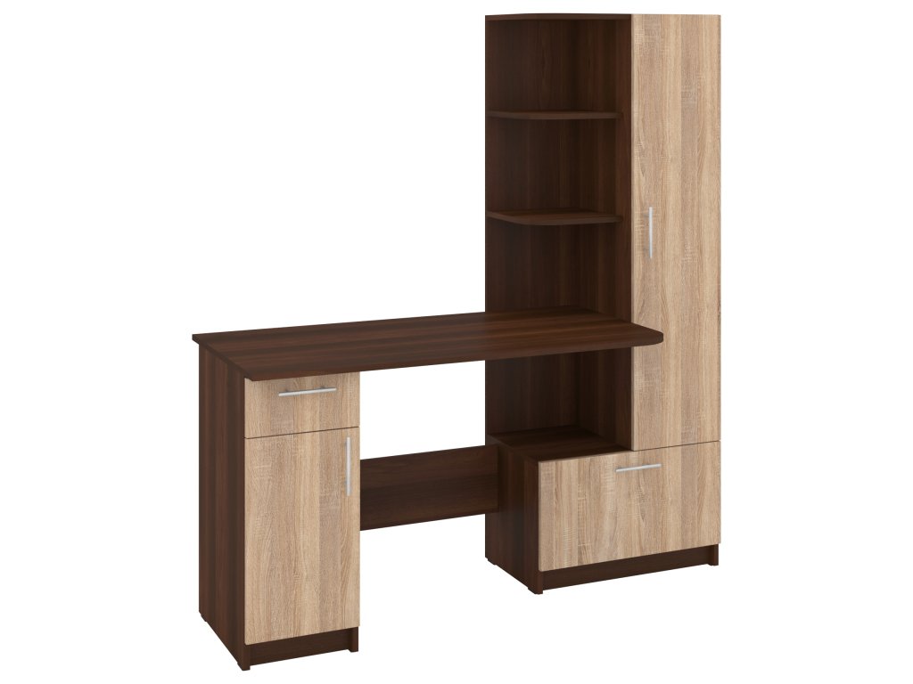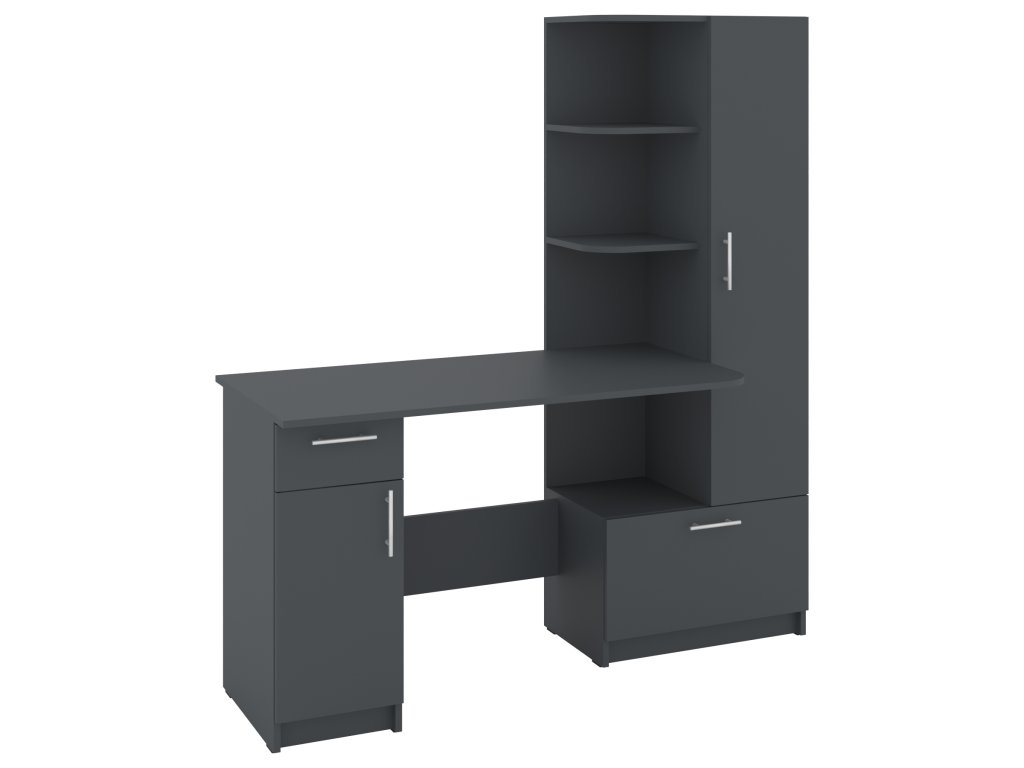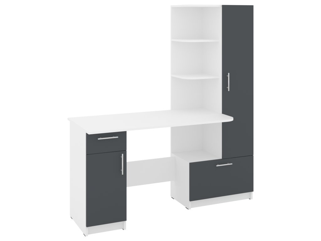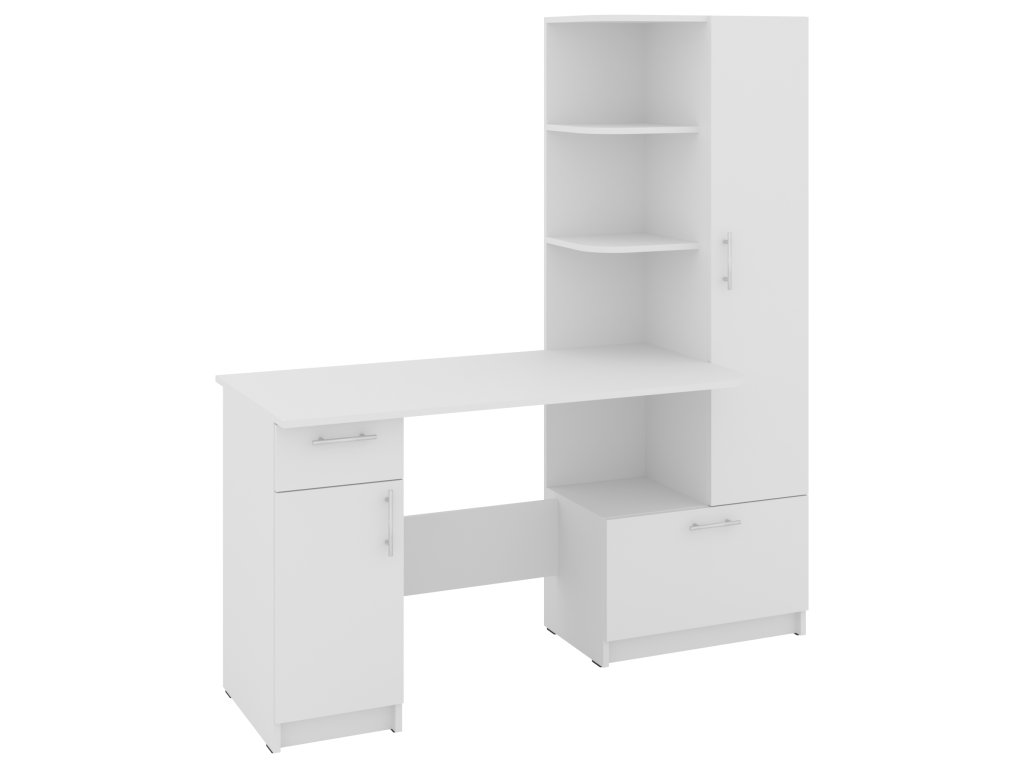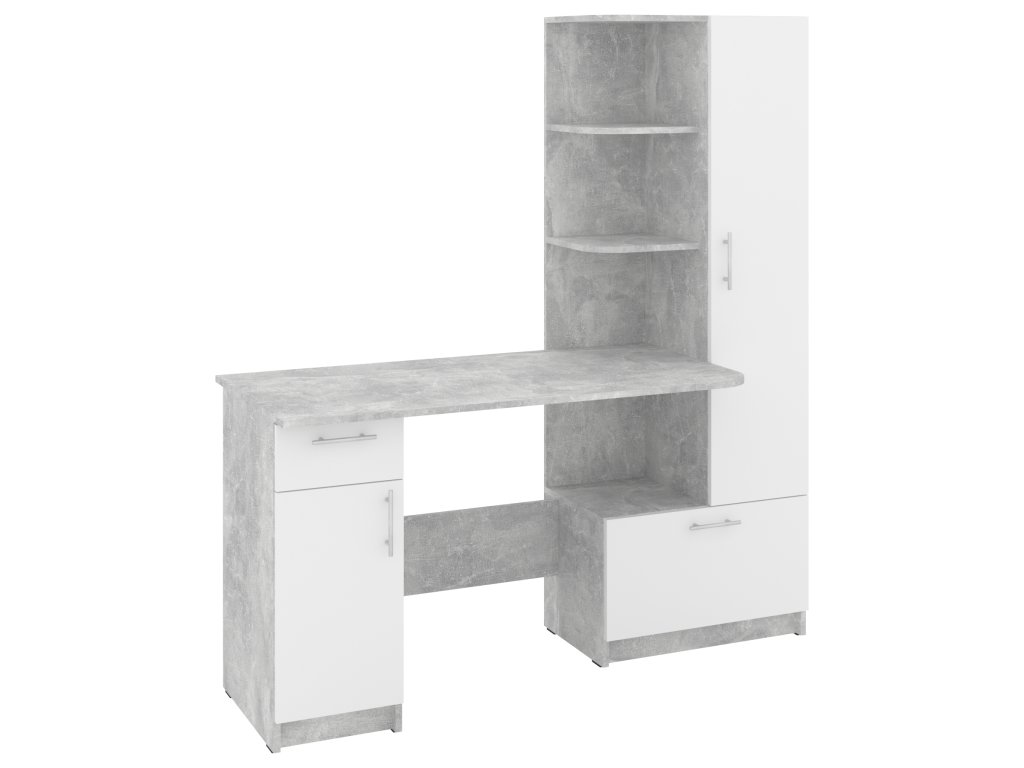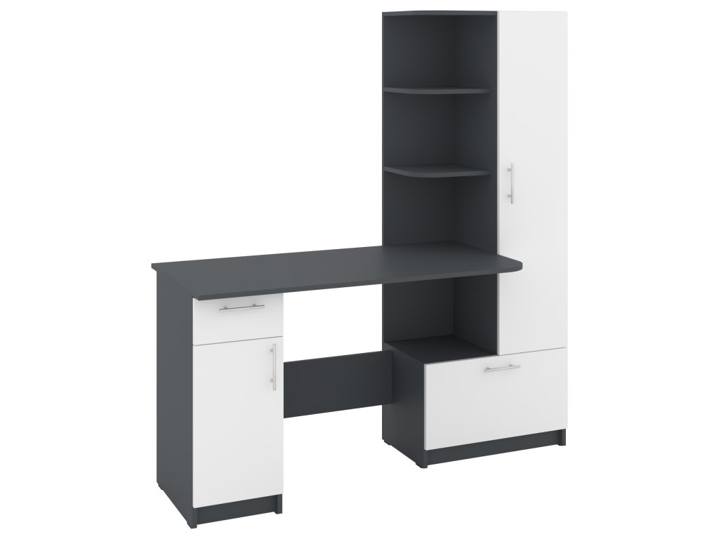 Psací stůl SANS se skříní a policovým regálem je ideálním řešením pro ty, kteří hledají kombinaci funkčnosti a stylového designu do své pracovny nebo domácí kanceláře. Tento elegantní stůl nabízí dostatek prostoru pro vaše pracovní potřeby a zároveň poskytuje úložný prostor pro dokumenty, knihy nebo kancelářské potřeby.