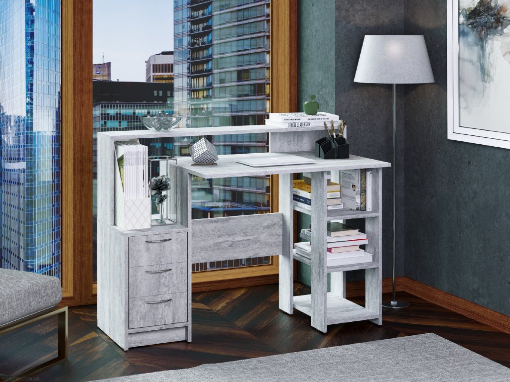 - Praktický design: Stůl je vybavený zásuvkami pro uchování věcí a policovým regálem pro uložení knih, dokumentů nebo dekorací. Vše budete mít na dosah ruky a přehledně uspořádané.