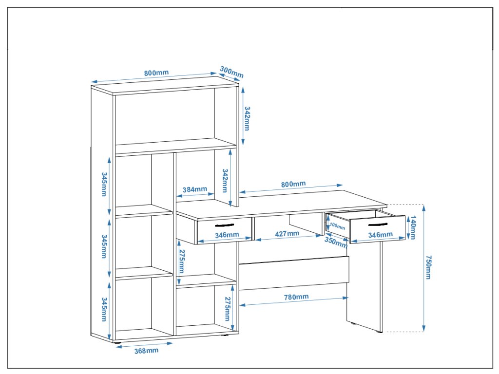 - Prostorné úložné možnosti: S několika zásuvkami a policovým regálem budete mít vždy všechno na svém místě – od kancelářských potřeb po knihy či dokumenty.