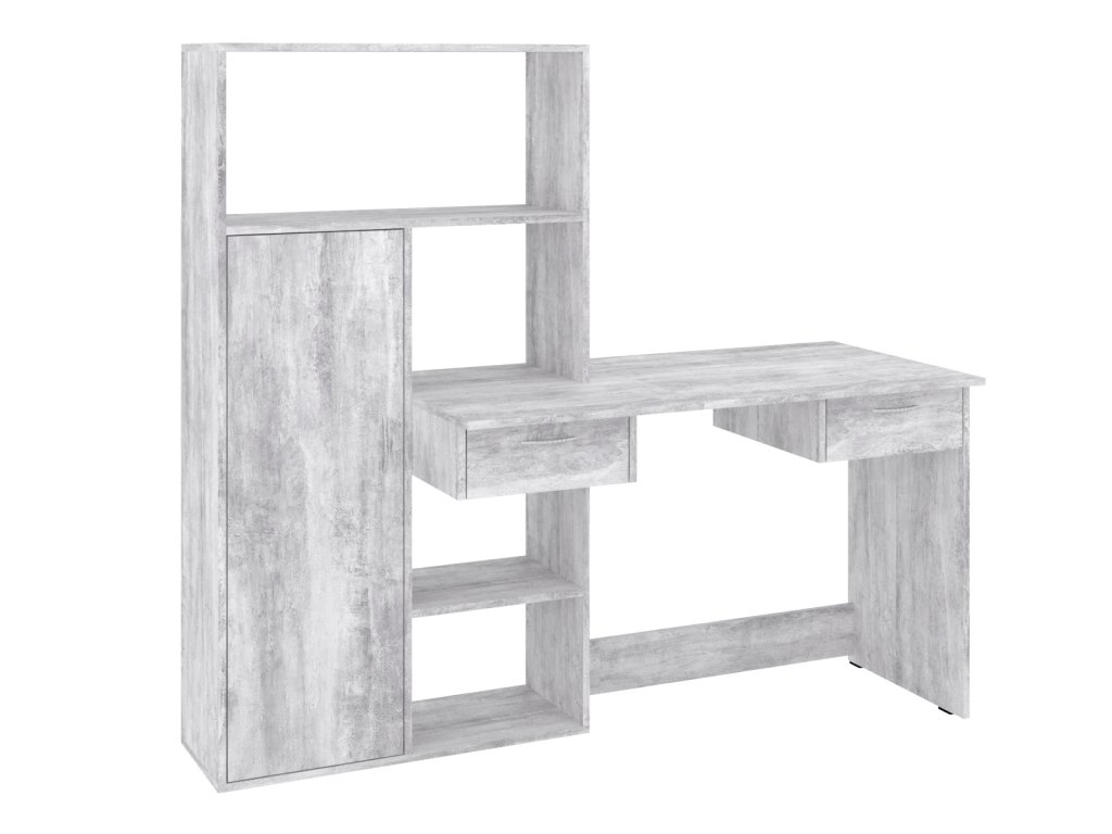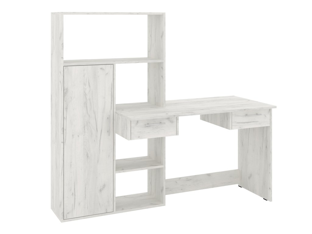 Psací stůl Tornado je ideální volbou pro každého, kdo hledá kombinaci moderního designu, funkčnosti a praktičnosti. Tento stůl nabízí dostatek prostoru pro práci i ukládání věcí, díky integrovaným zásuvkám, policovému regálu a skříňce. Jeho elegantní vzhled se hodí do každého interiéru – ať už je to domácí kancelář, studentský pokoj nebo pracovnu. Stůl je vyroben z kvalitních materiálů, které zajišťují dlouhou životnost a odolnost.