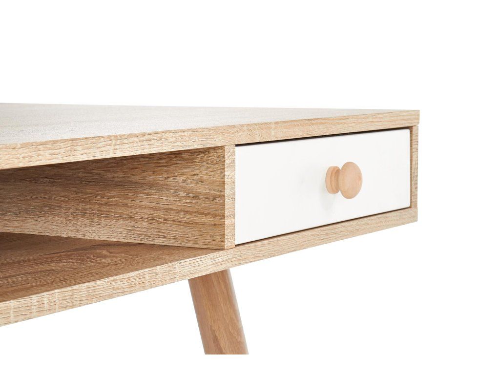 Součástí stolu je prostorná zásuvka vhodná pro uložení dokumentů, psacích potřeb nebo drobností. Dvě otevřené police nabízí dostatek místa pro knihy, organizéry nebo dekorace.