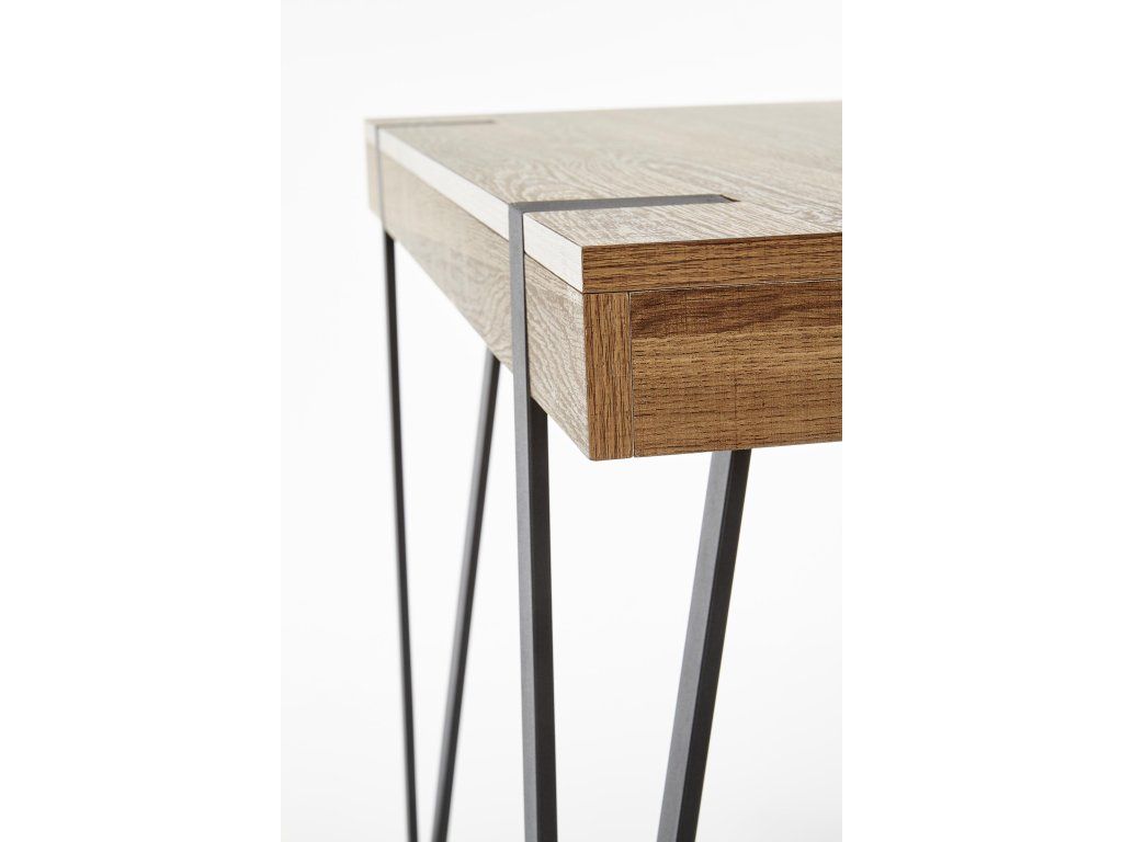 Robustní konstrukce s černými ocelovými nohami s práškovým nástřikem nejen zajišťuje stabilitu, ale také podtrhuje industriální a skandinávský styl, který se hodí do moderních interiérů. Jeho surový a minimalistický design vytvoří ve vašem pracovním koutku neotřelou atmosféru.
