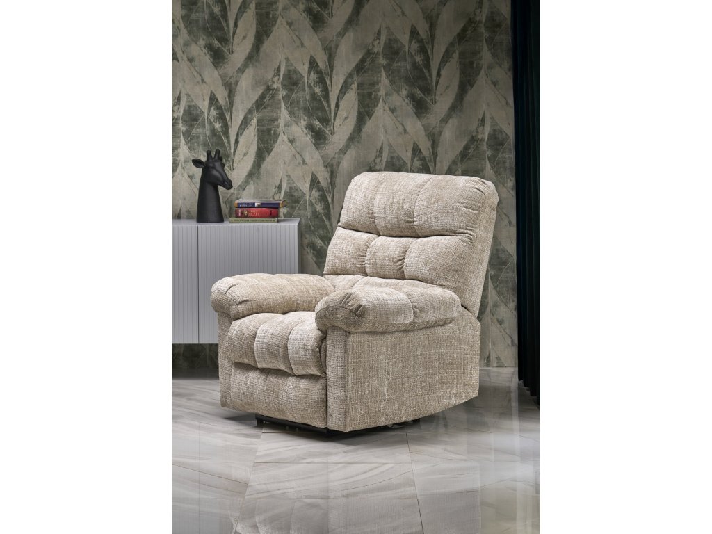 Objevte dokonalé spojení pohodlí a tradičního designu s relaxačním křeslem ALEX v elegantní béžové barvě. Díky elektrické funkci rozkládání si snadno přizpůsobíte polohu křesla pro maximální relaxaci po náročném dni. Vyrobeno z kvalitní tkaniny, která je příjemná na dotek a zároveň odolná vůči opotřebení.