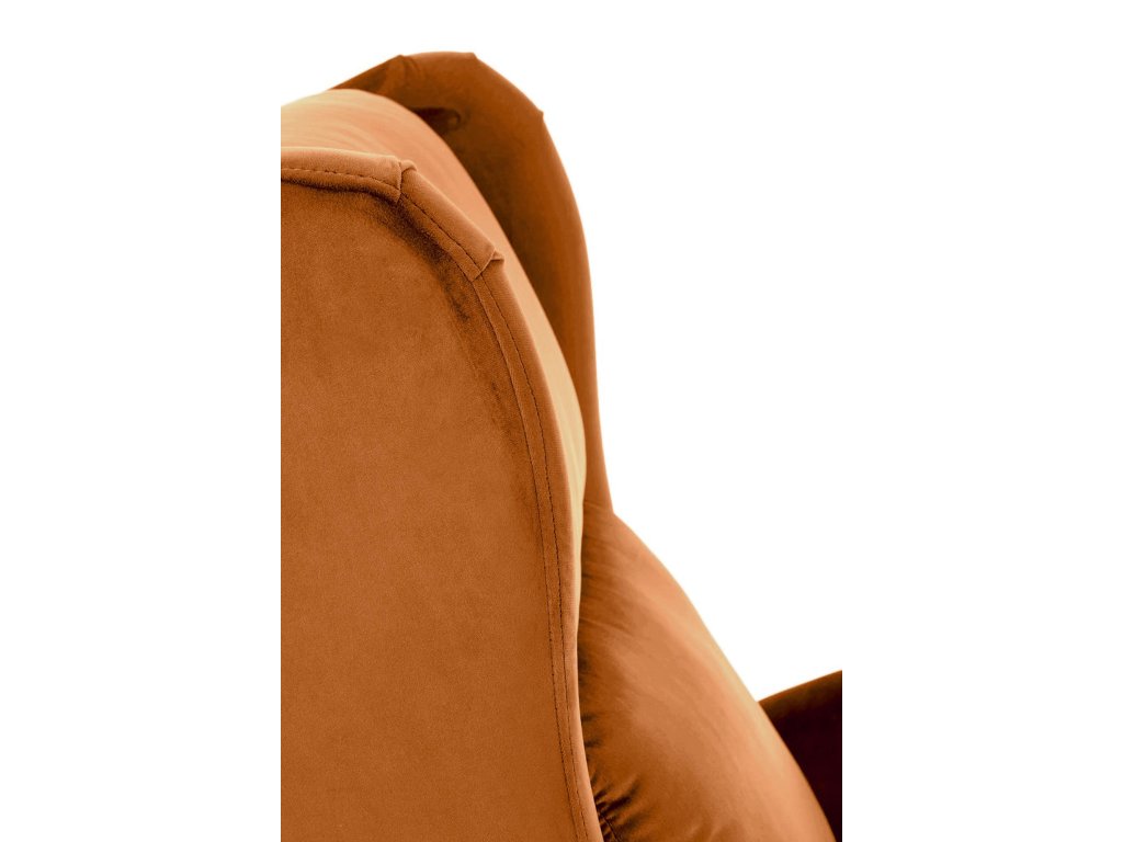 Relaxační křeslo CALUM je ideální volbou pro ty, kdo hledají pohodlný a funkční kousek nábytku do svého interiéru. Čalouněné kvalitní sametovou látkou v teplé skořicové barvě, která vnese do místnosti příjemnou atmosféru a eleganci. Sametová látka je příjemná na dotek, krásně se leskne a její odstín se lehce mění podle směru chloupků.