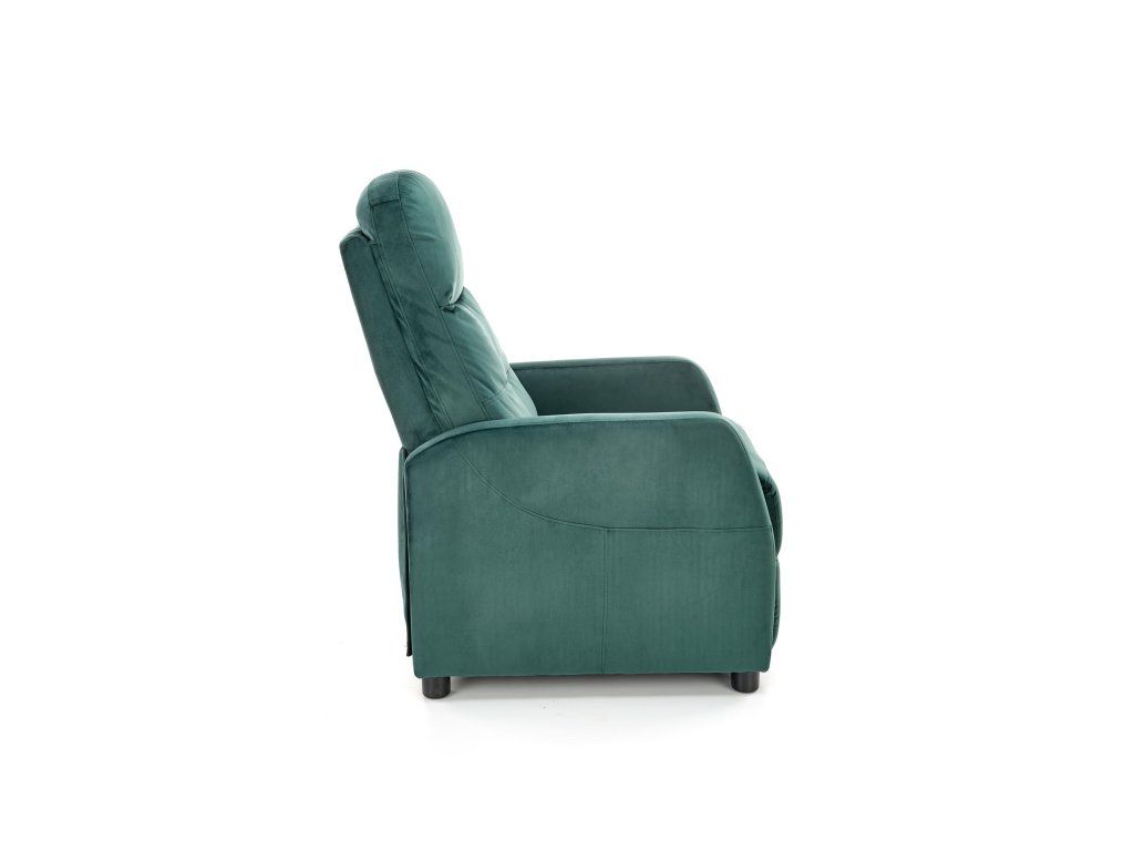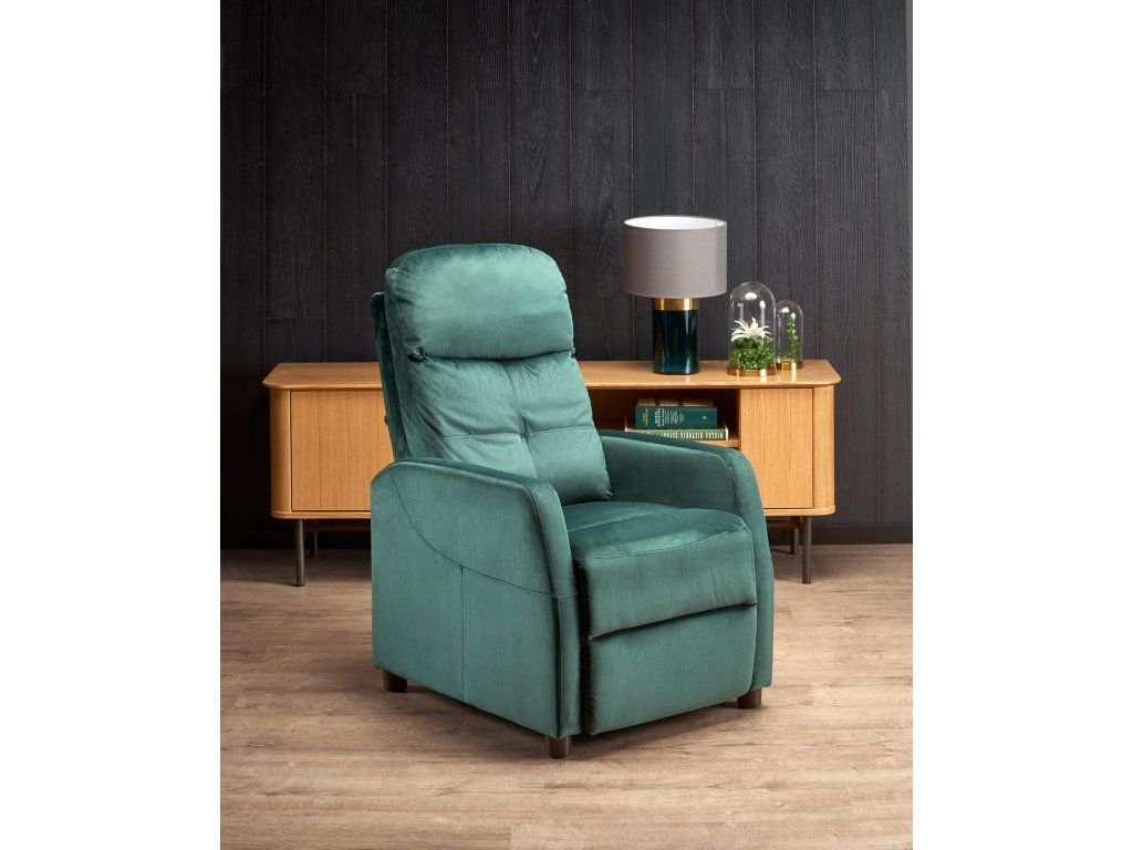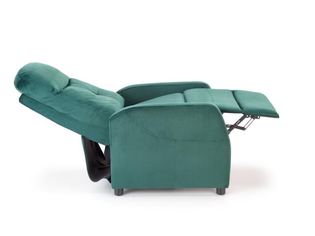 Relaxační polohovací křeslo LUIS II – Zelené sametové pohodlí s nádechem elegance