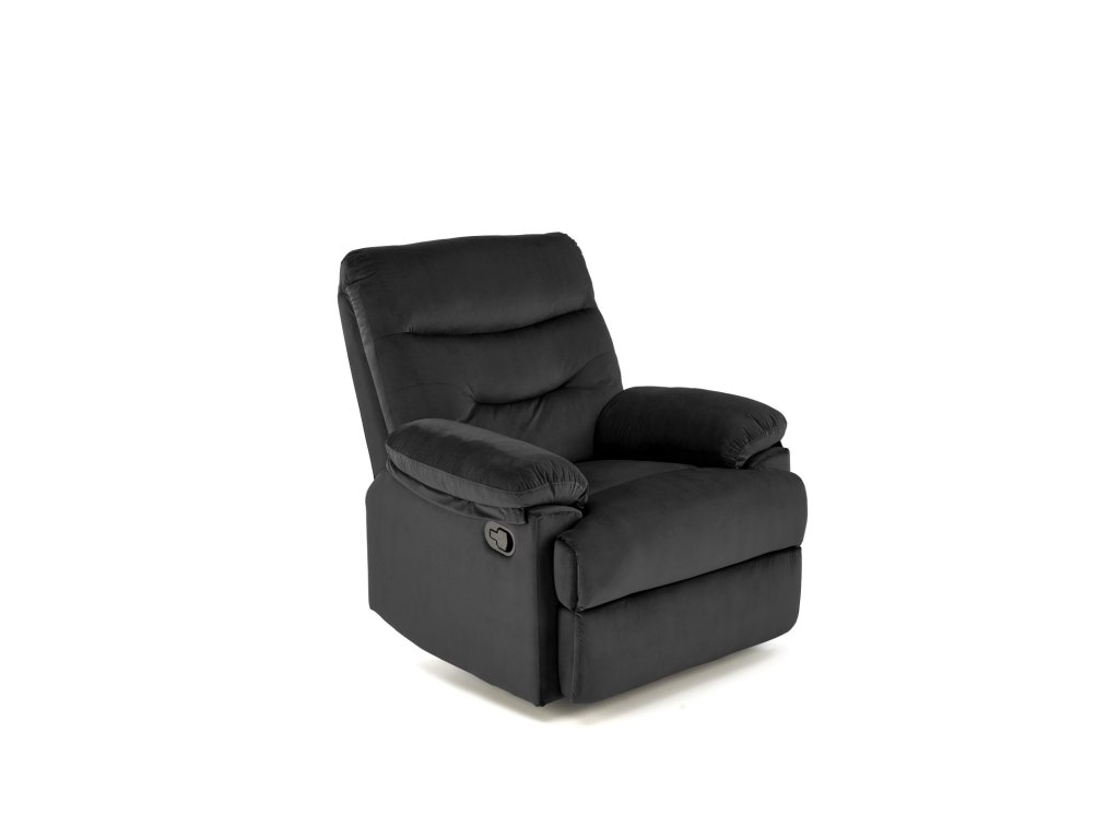 Relaxační křeslo PATCH v elegantní černé barvě spojuje pohodlí s moderním designem, který snadno zapadne do každého interiéru. Vyznačuje se jemnými liniemi, sametovým potahem a pečlivě zpracovanými detaily, které vytvářejí dojem luxusu a klidu.