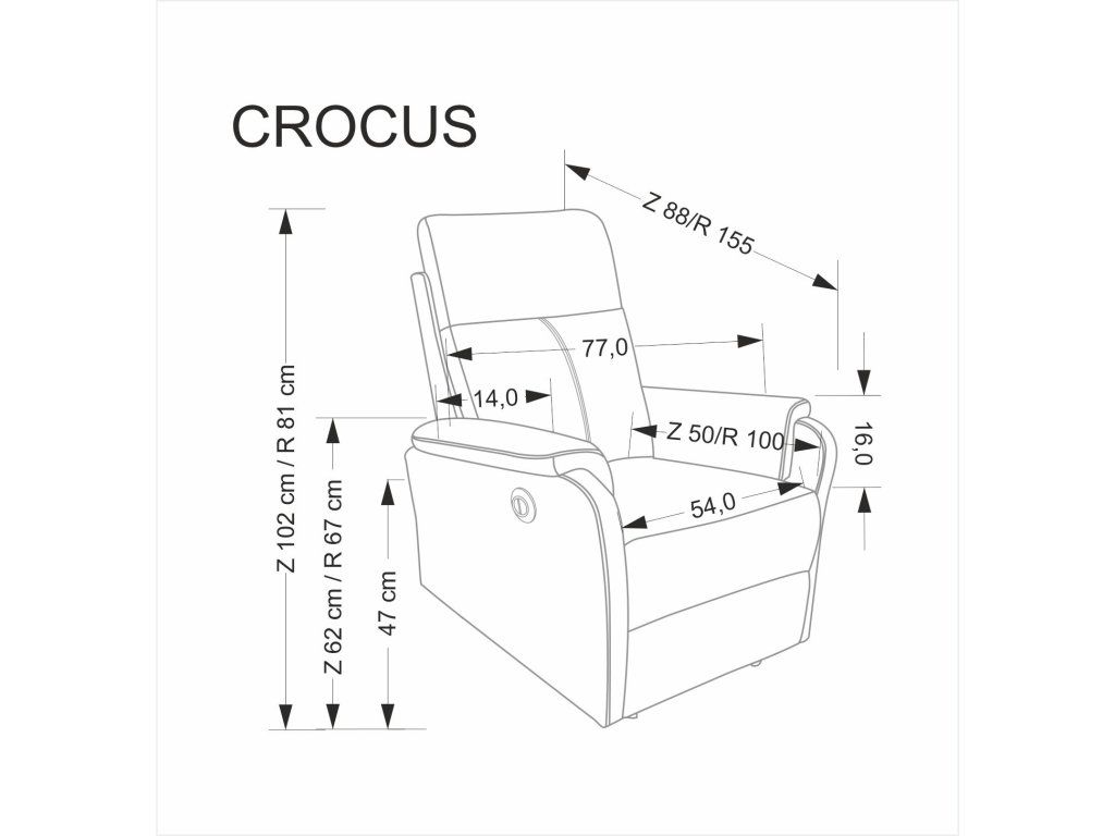 Rozměry 77/88-155/102-81/47 cm jsou navrženy tak, aby poskytly pohodlí i v menších prostorách.