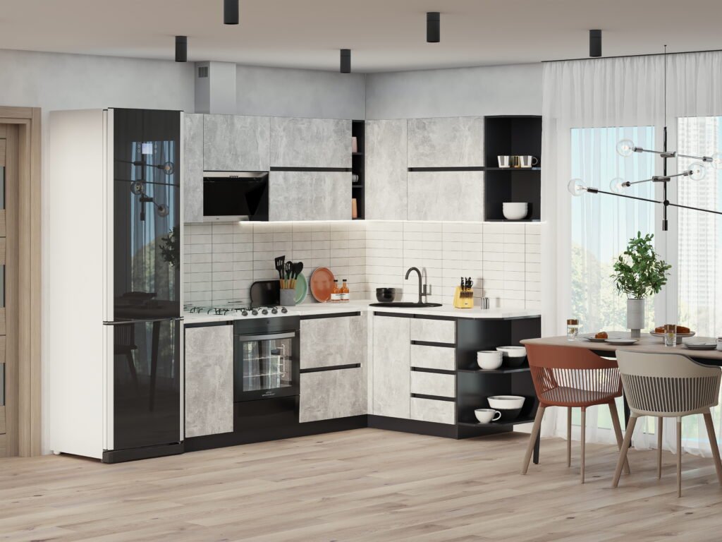 Rohová kuchyňská linka NORD 230 x 170, beton + antracit