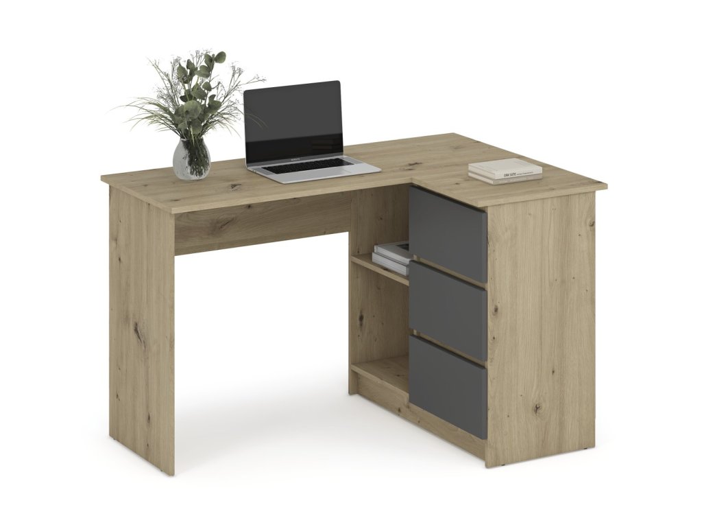 Rohový psací stůl BENING dub artisan / grafit – Stylový a praktický prostor pro práci i studium
