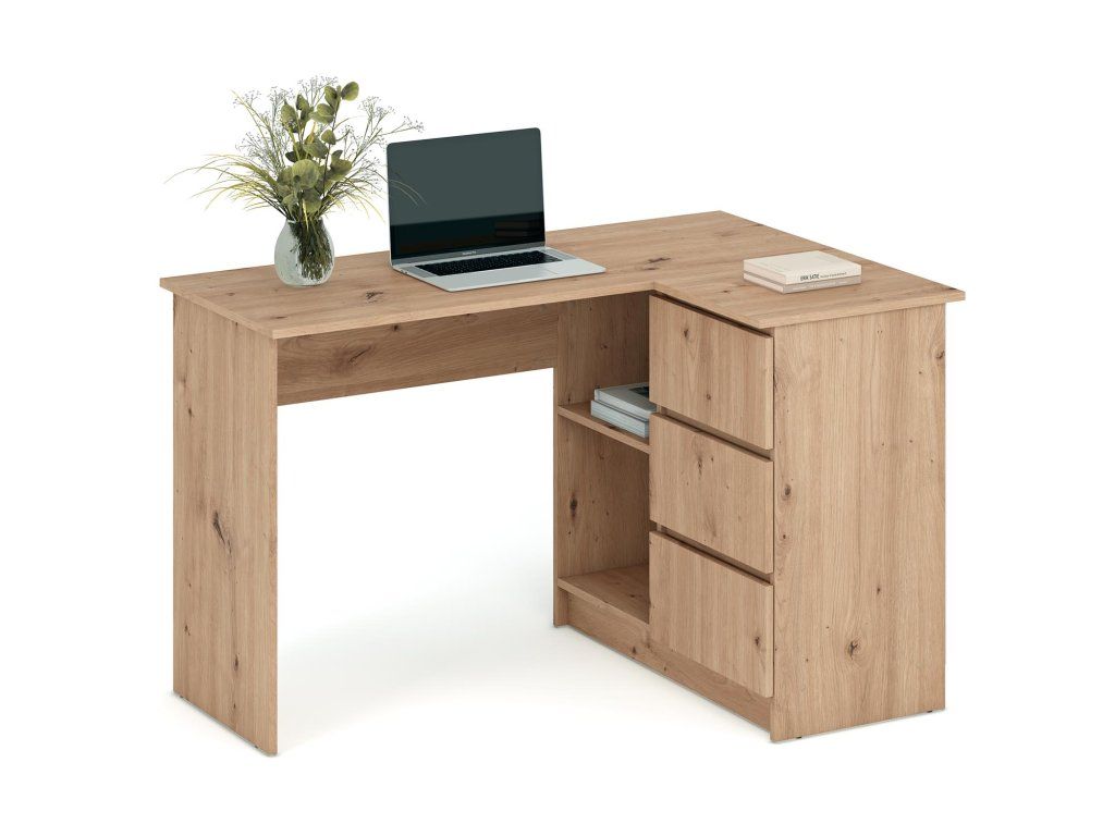 Rohový psací stůl BENING dub artisan – Přirozený styl a funkčnost v jednom