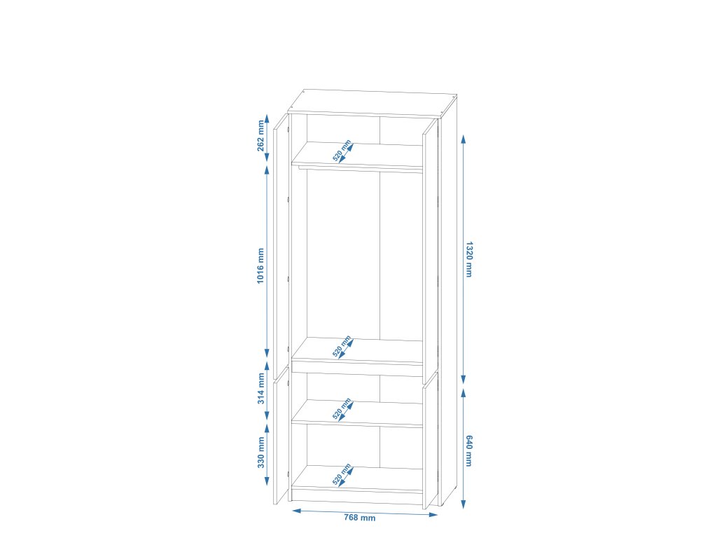 Šatní dvoudvéřová skříň NEW SYSTEM je perfektní volbou pro ty, kteří hledají kvalitní a praktické řešení pro úložný prostor. Díky rozměrům 207 cm na výšku, 80 cm na šířku a 54 cm na hloubku je ideální do středně velkých prostor, kde efektivně využijete každý centimetr. Otvírací dveře umožňují snadný a pohodlný přístup k obsahu skříně.
