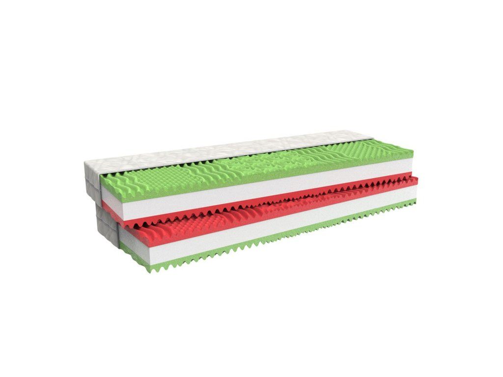 Matrace je vyrobena z kvalitní PUR pěny, která poskytuje stabilní oporu těla a zachovává tvar po dlouhou dobu. Lehací plocha je profilována do 7 anatomických zón, které přesně podporují hlavu, krk, ramena, boky, střed těla, kolena a lýtka, a zajišťují tak správnou polohu páteře během spánku.
