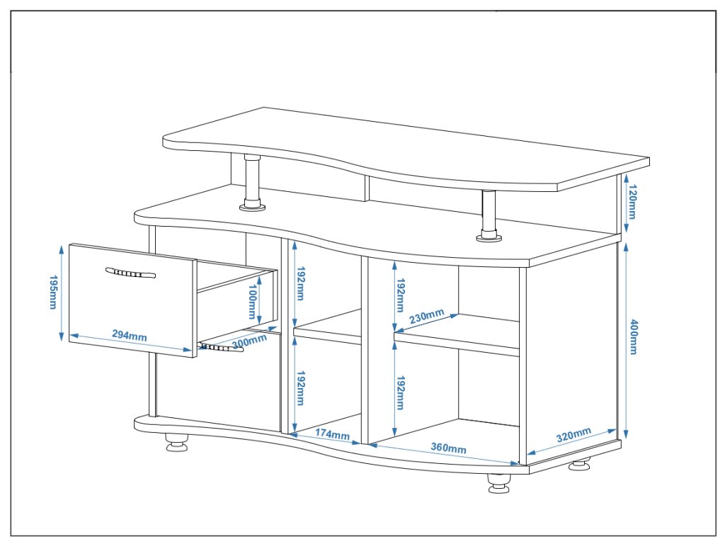 - Praktický úložný prostor – S otevřenými policemi a zásuvkami pro uspořádání všech vašich elektronických zařízení, DVD přehrávačů, herních konzolí nebo ovladačů.
