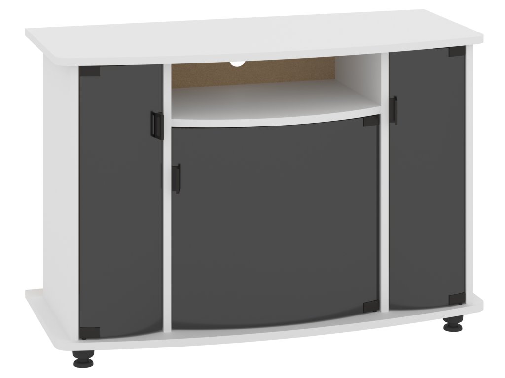 - Praktické uložení: Dvířka chrání uložené věci před prachem, zatímco otevřená police poskytuje dostatek prostoru pro další elektroniku nebo dekorace.