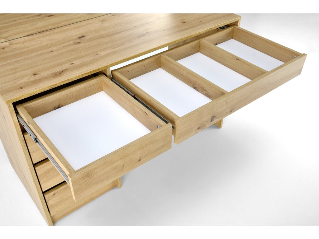 Toaletní stolek VEGAS XL v atraktivním dekoru dub artisan spojuje teplý přírodní vzhled s moderním pojetím designu. Je ideální volbou pro ty, kteří hledají praktický a zároveň esteticky výrazný kus nábytku do ložnice, šatny nebo beauty koutku.